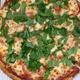 Red Sauce, cheese, garlic, tomatoes, and fresh basil.